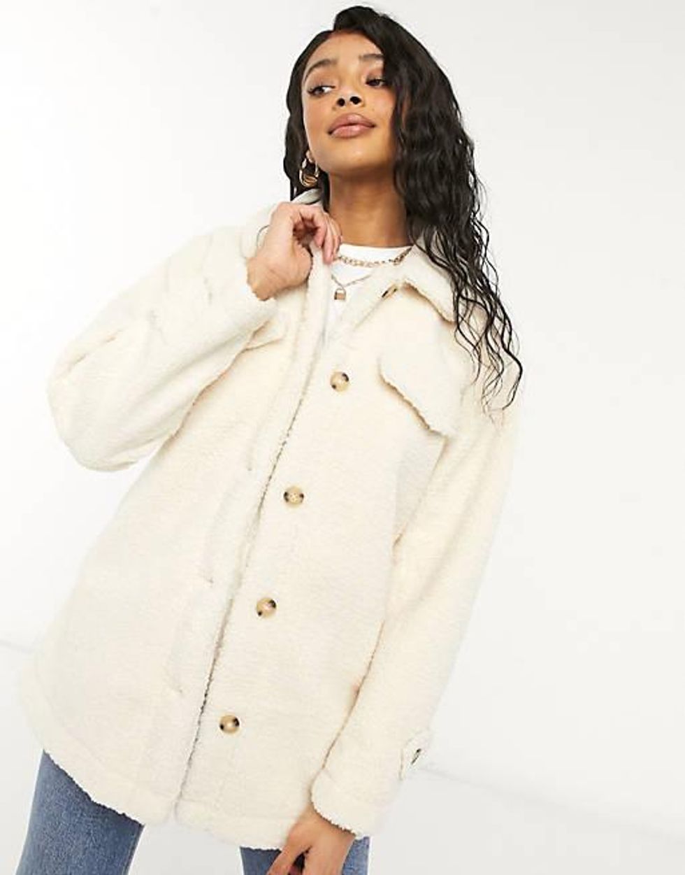 Details: This shacket is made out of cozy sheepskin-like fabric with a bumpy texture. Want to save even more? If you download the ASOS app, you can use the promo code ASOSNEWAPP to get an extra 15% off.