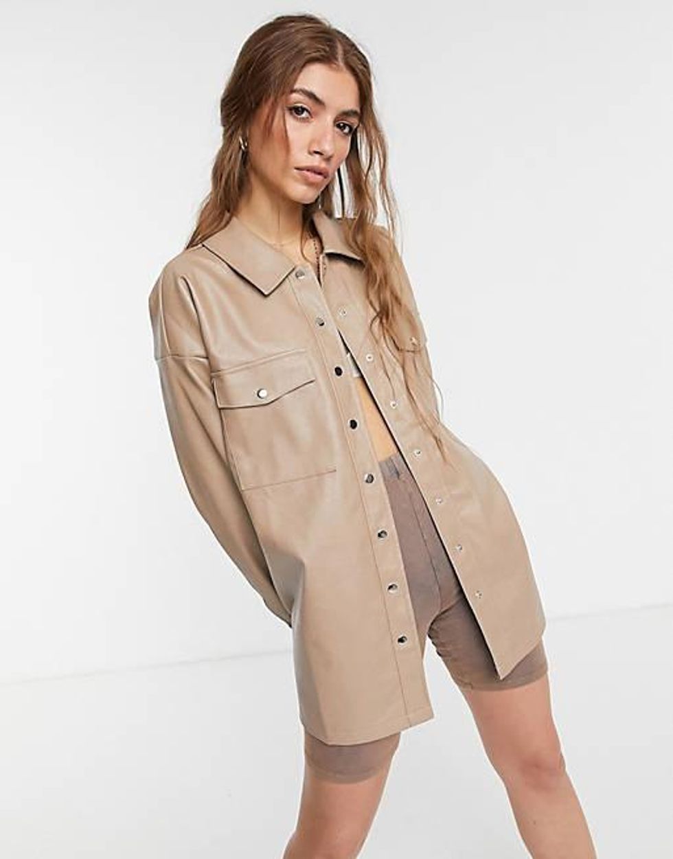 Details: Influencer Olivia Bowen helped design this smooth, faux leather shacket with drop shoulders. It runs large so you'll want to size down so you can still get that baggy fit without it looking like it swallowed you whole.