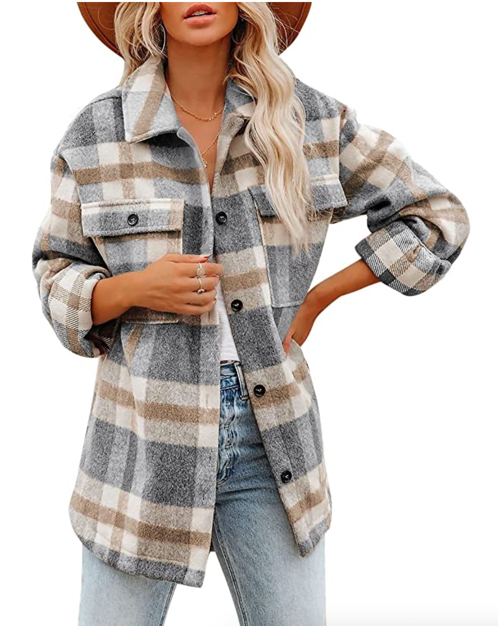 Details: There's no shortage of shackets on Amazon Canada if you want to order one in a jiffy. This grey and khaki one looks so cozy and perfect for chilly nights.