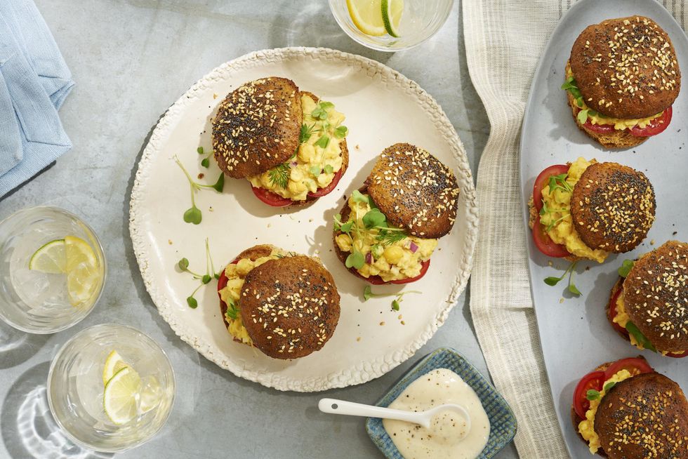 Fresh herbs (like tarragon or dill), dijon mustard and, of course, Hellmann's Vegan Ranch Salad Dressing make this dish pop. With celery for crunch and topped with greens and tomato, these mini burgers make it easy to eat your veggies.