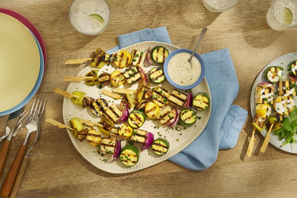 If you're looking to add more plants to your backyard-barbecue menu, try these grilled tofu and vegetable kebabs that use Hellmann’s Vegan Caesar Salad Dressing as a marinade and a dipping sauce.