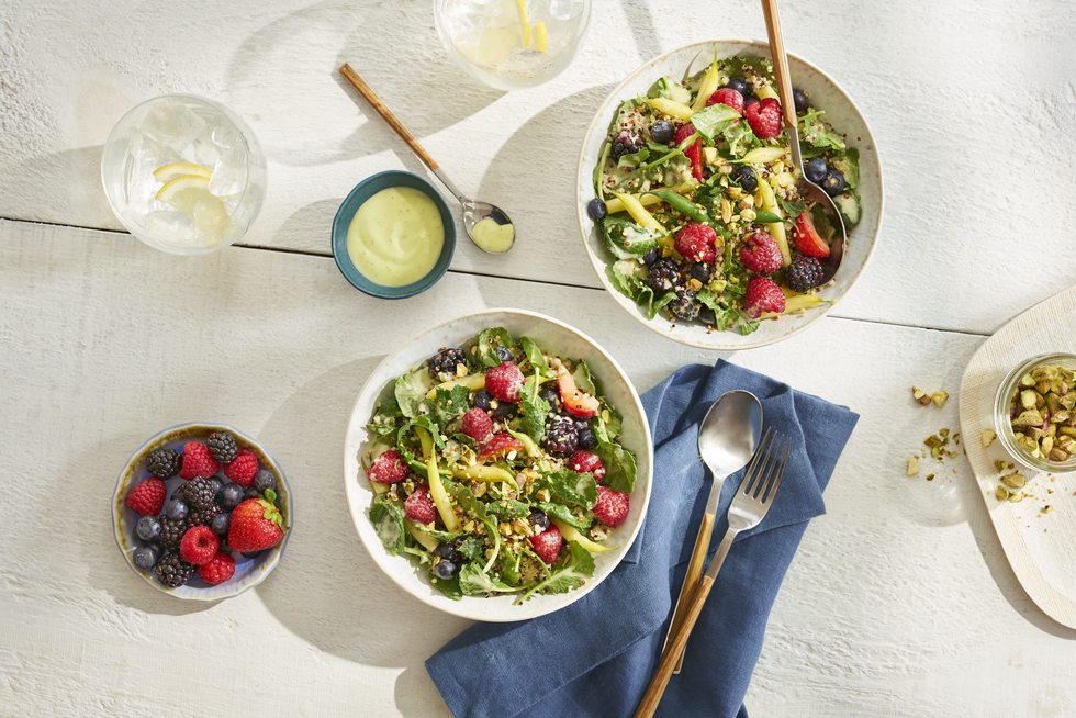 Quinoa and kale make a satiating base for pistachios and the berries of your choice. If you weren’t a fan of salad before, this recipe (topped with fresh and creamy green goddess dressing) might just reform you.