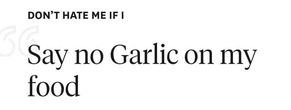 Of all of the things I've seen on the dating apps, this might be the most shocking. I'm the type who adds seven cloves when a recipe calls for two, so while I respect this person's dietary choices, I am personally perplexed by it.