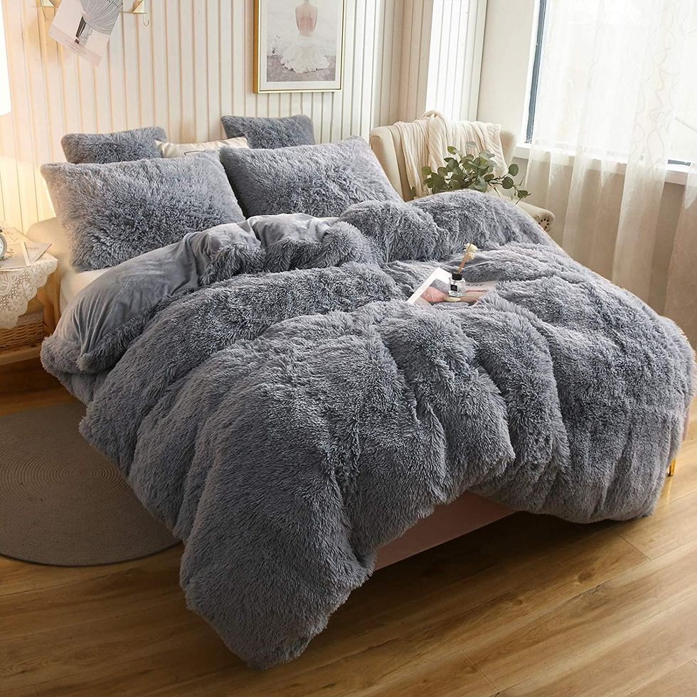To make it even more tempting to stay in bed all day, here's an incredibly plush bed set that'll embrace you in the coziest cocoon of all time. It fits twin, queen and king beds and comes with a duvet cover and one or two pillow shams depending on the size you choose.