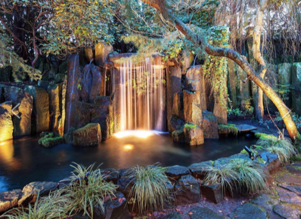 The outside is just as large and in charge and there’s even a waterfall in the back.