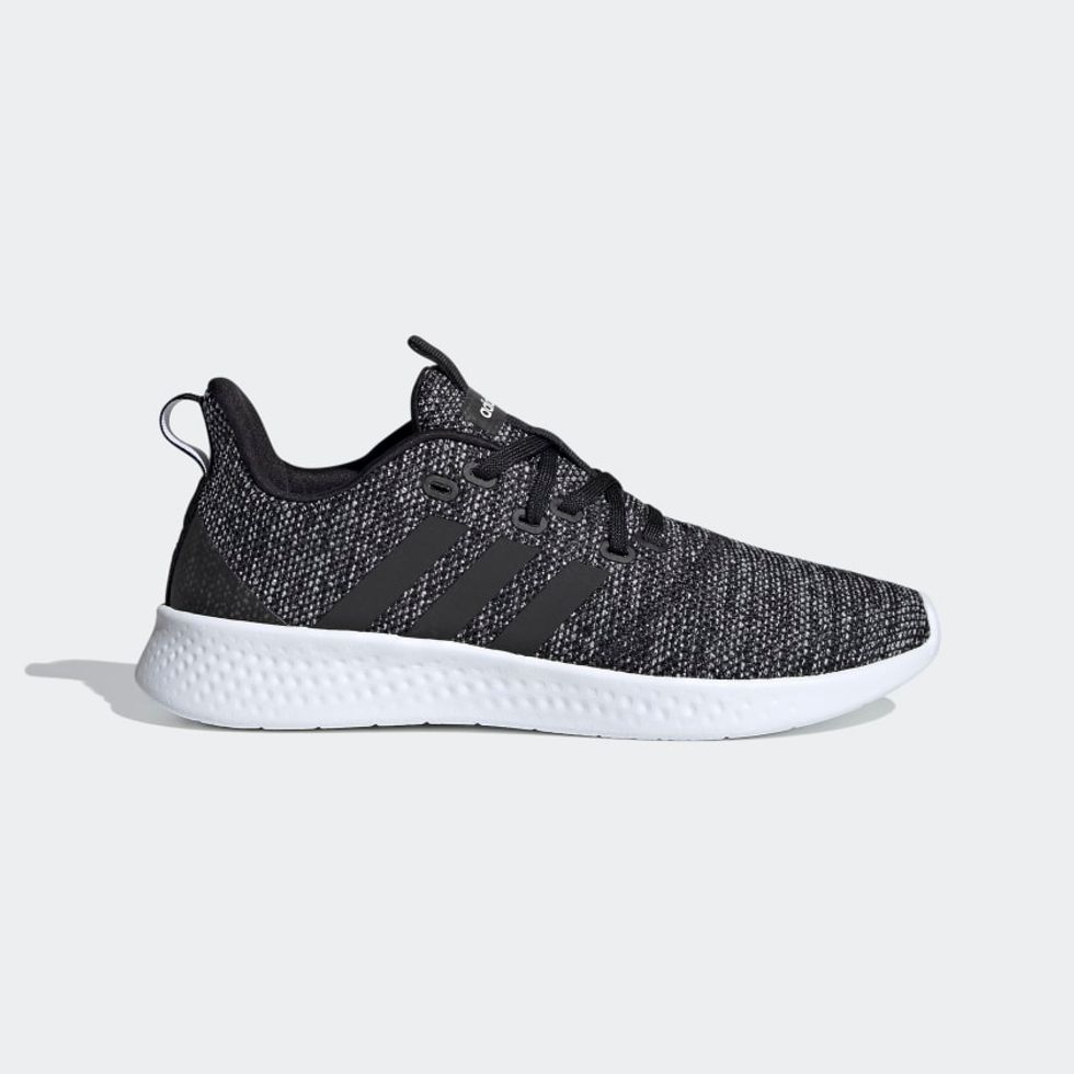 Details: These running shoes are meant to cushion your feet while you exercise. The heel is designed to let you move freely while there's support for the middle of your foot.
