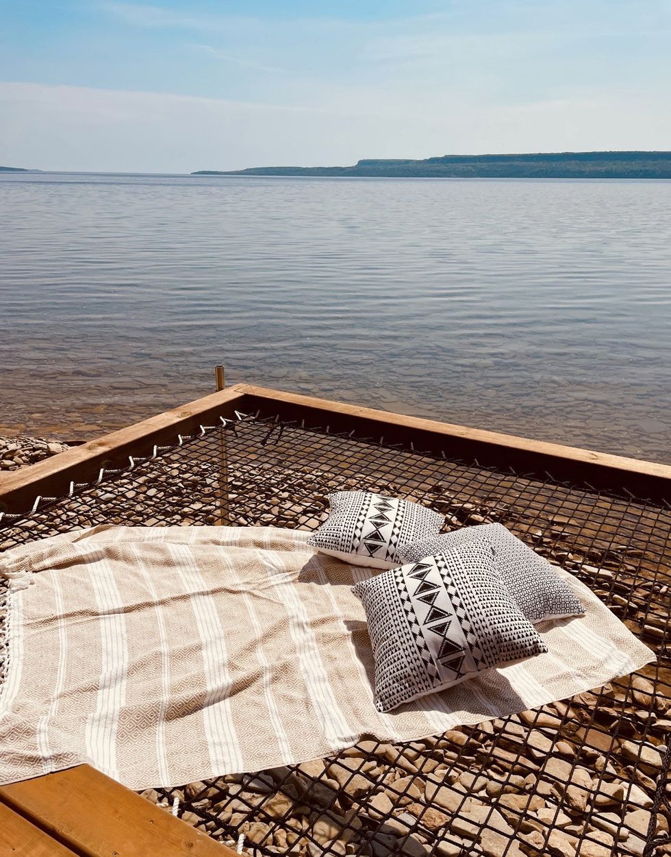 It offers spectacular views of Colpoy's Bay which can be enjoyed from the two decks and the hot tub. There's even a unique "dock net" which lets you lounge over the water.