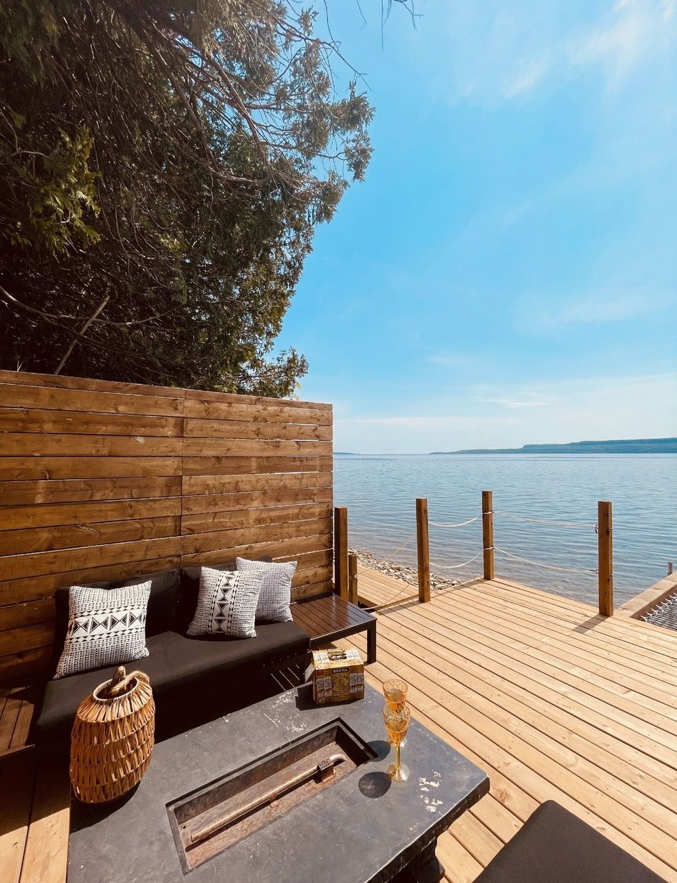 The four-season Airbnb, called Highview Beach House, sits on a cliff at the edge of the Niagara escarpment in Wiarton, Ontario.