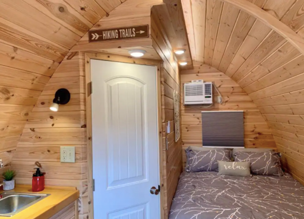 This little home has an open floor plan that makes it feel like the pod is bigger than it is. It's very similar to a studio apartment.