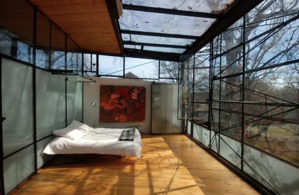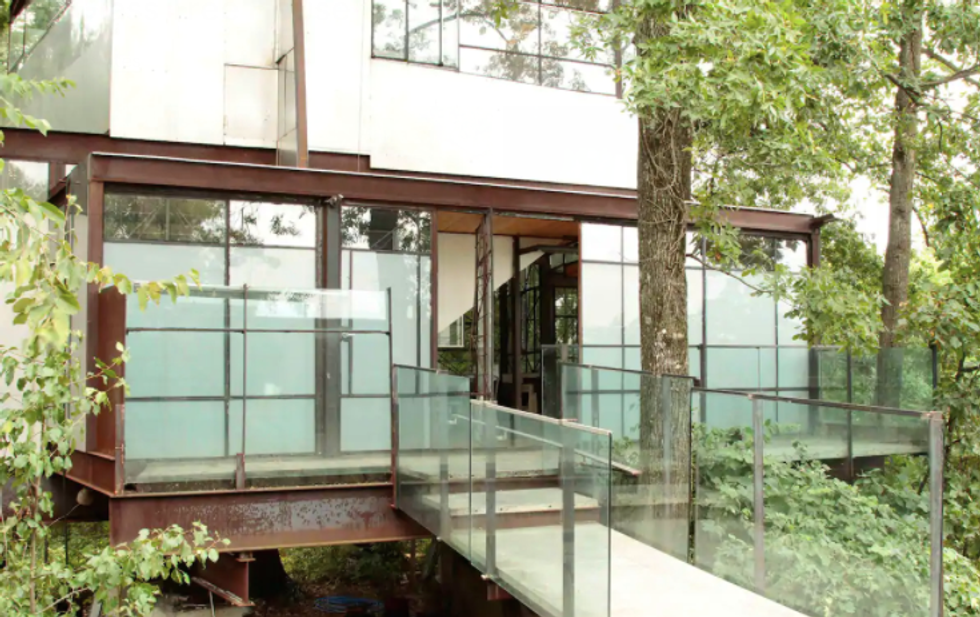 This Modern Glass Treehouse in the city looks like something out of the movie Twilight. It's sophisticated and beautiful, built on a steel frame tucked between a gathering of hardwood trees, yet still super close to all the fun stuff to check out in downtown ATL.
