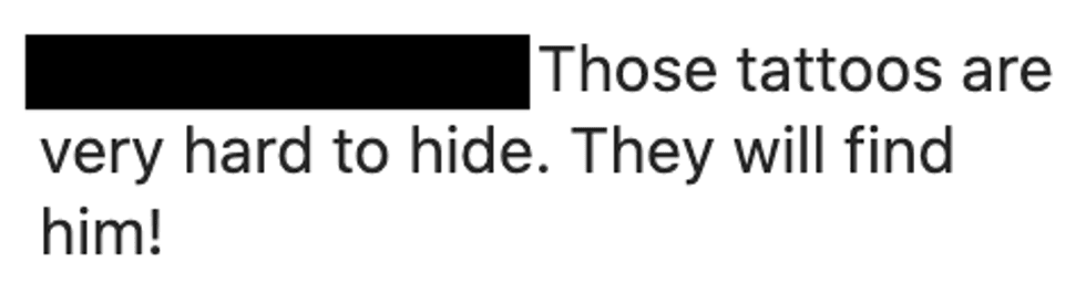 Several people in the comments believe to have found the man’s true identity, linking to his Facebook, which has since been deactivated. One commenter suggested getting the receipts from their date spots as a possible way to track him down. Another commented, “Those tattoos are very hard to hide. They will find him!”