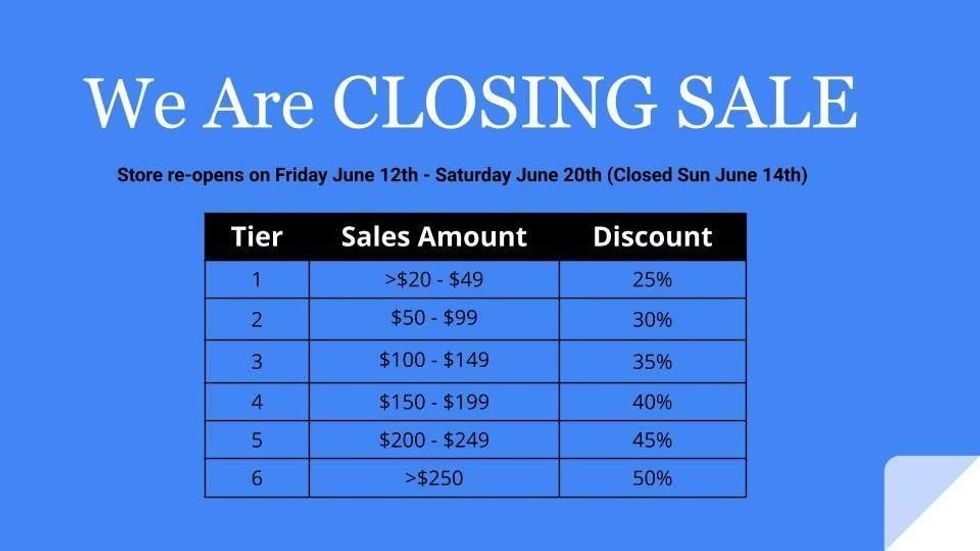 They'll be reopening for the sale starting Friday, June 12 through Saturday, June 20, from noon to 8 p.m.