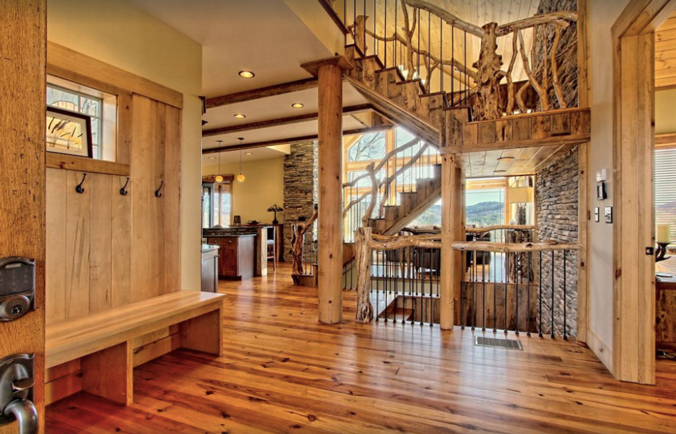 As you cruise up the winding driveway, your mouth will probably drop. Aside from the amazing panoramic mountain views, the woodwork and stonework on the outside are sure to blow your mind. And the interior will wow you just as much as the exterior.