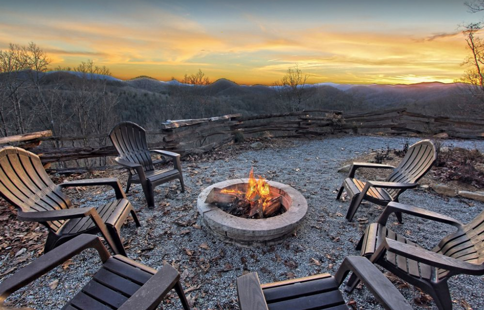 Everyone can sit around the outdoor fire pit as the sun sets to roast s'mores or fire up the grill to whip up some hot dogs with the Bob Ross-Esque skyline as your backdrop.
