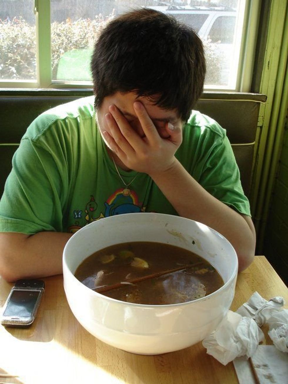 So exactly how massive is this challenge? The bowl will equal out to about 3 large phos, totaling 96 oz of liquid and 20 oz of meat. You must eat everything in the bowl within an hour in order to win.