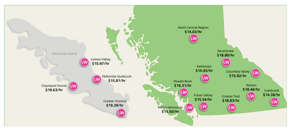 The North Central Region and Cranbrook currently have living wages of $14.03 and $14.38 respectively.