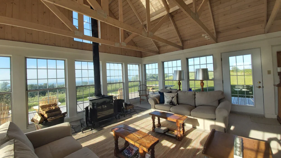 Why You Need To Go: This home is on 50 acres of oceanfront property with panoramic views of the water, shoreline and rolling hills that you can enjoy from the wraparound deck. Inside, there is an open concept floor plan with three bedrooms that sleep up to eight people and two bathrooms that have views of the water.