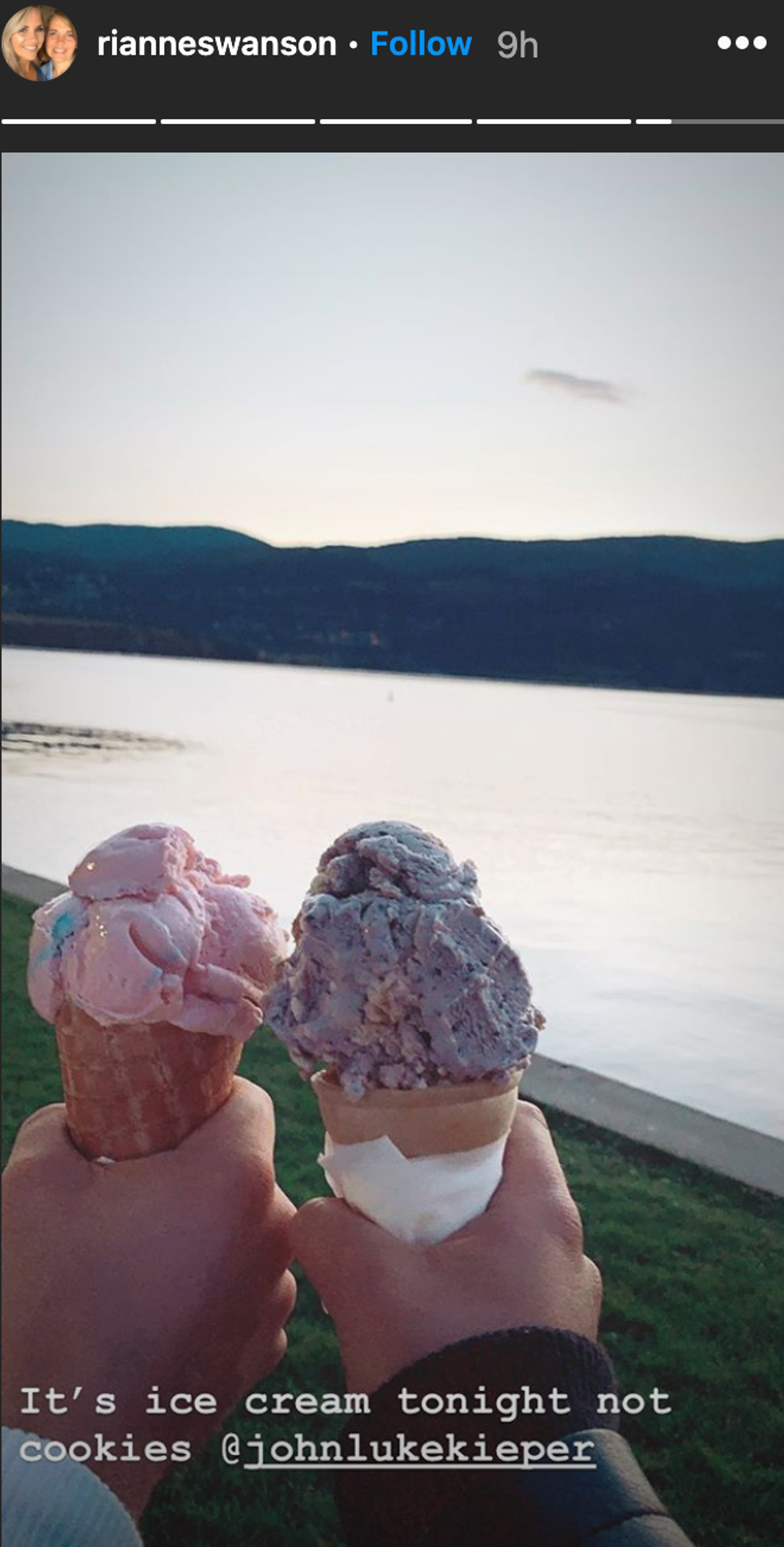 "Look who I found!!!!" the 29-year-old wrote on a selfie of the two of them. She added, "it's ice cream tonight not cookies" on another photo of her snack with Kieper.