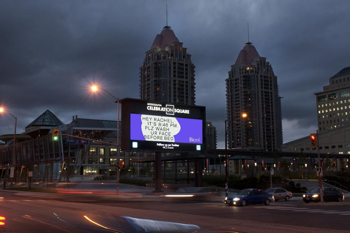 Using billboards in view of apartment buildings and condos in Toronto, Bioré® is calling out people by name to remind them to wash their face before bed. They even found a way to get folks' attention during YouTube binge sessions with "Wash Your Face" reminders popping up during ad breaks. The "Wash Your Face" reminders are a part of the Bioré® mission to encourage Canadians to get rid of what they don't need, take a few steps back and get back to the basics of skincare.