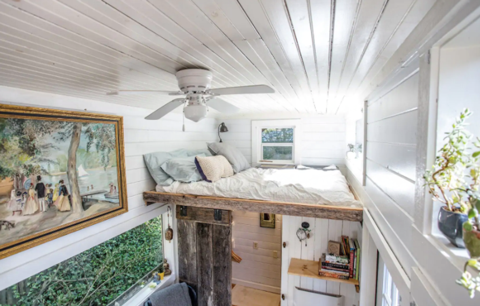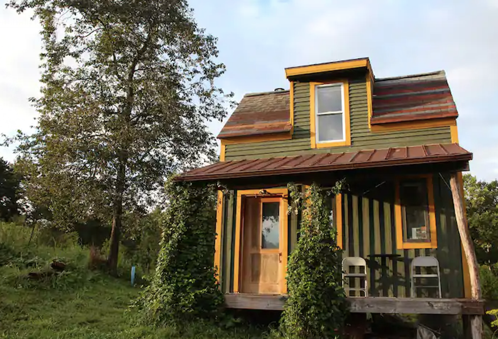 Why You Need To Go: This 320 square-foot cabin sits on a working hobbyist farm and is perfect for a cozy getaway. There are two stories with a full-sized bed on the second floor and the kitchen/living space on the first.