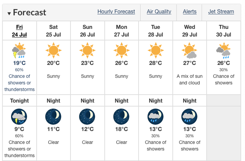 While it will be a warm one with a high of 19 C, rain is a strong possibility.