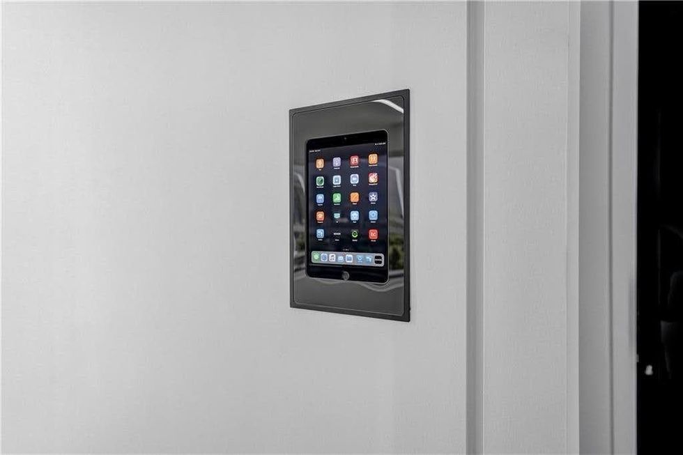 The kitchen looks like it should be the set of a luxurious cooking show, the bedroom looks like it belongs in an upscale Vegas hotel, and the iPad interface installed in the wall belongs in space.