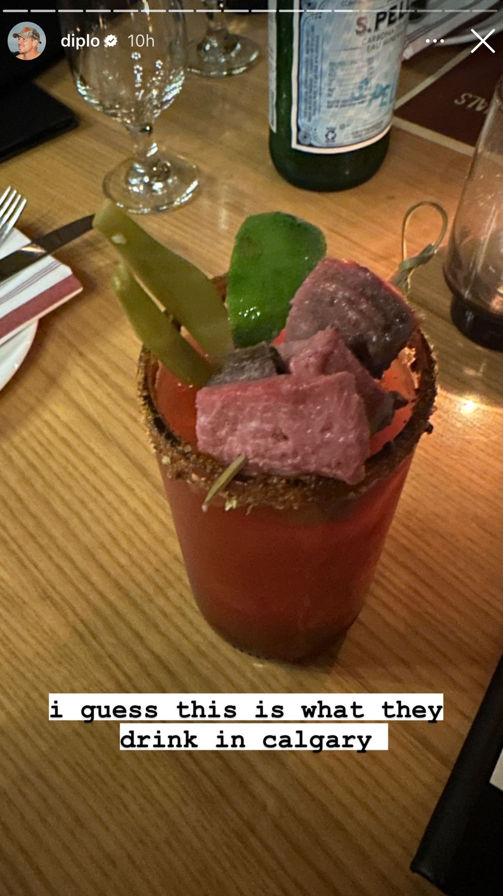 In a series of Instagram stories, the DJ showed his arrival into town for the Calgary Stampede on a private jet naturally. Then before the show, Diplo headed to Smuggler's on Macleod Trail.