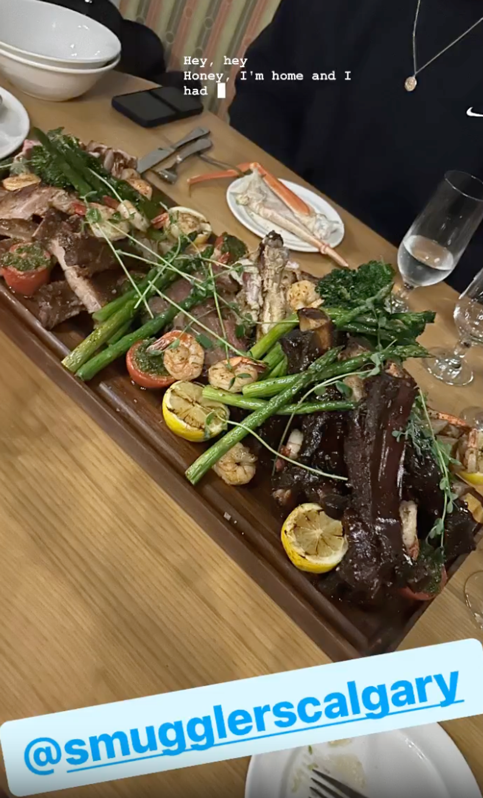 He also shared a photo of a platter complete with a hefty serving of meat and shrimp, accompanied by a song by Canadian queen, Shania Twain.