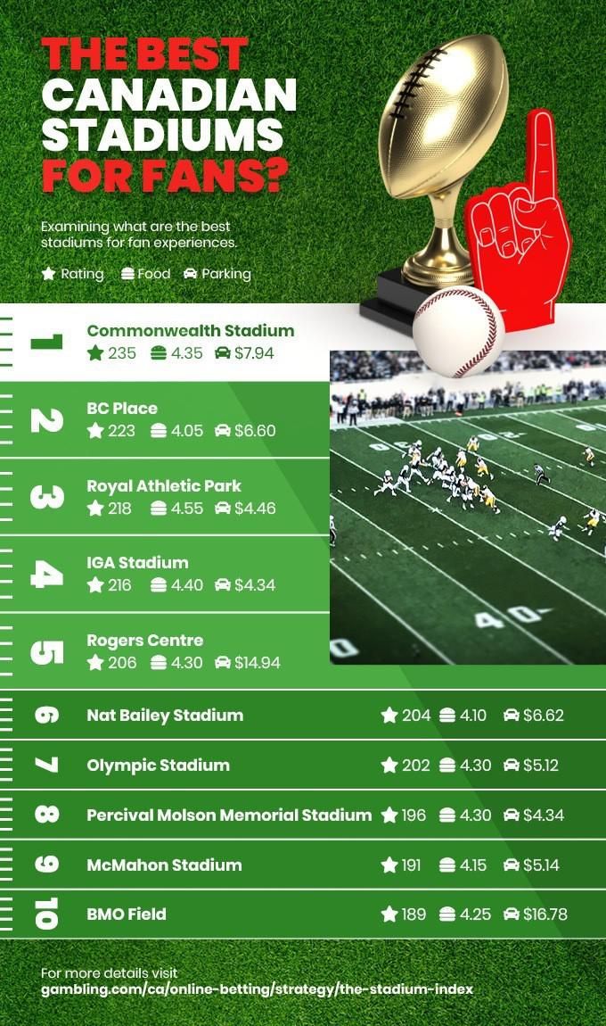 According to a new study from gambling.com, the answer is Edmonton's Commonwealth Stadium, which ranked first in the "fan experience" index and handily beat out any stadiums from Ontario or Quebec.