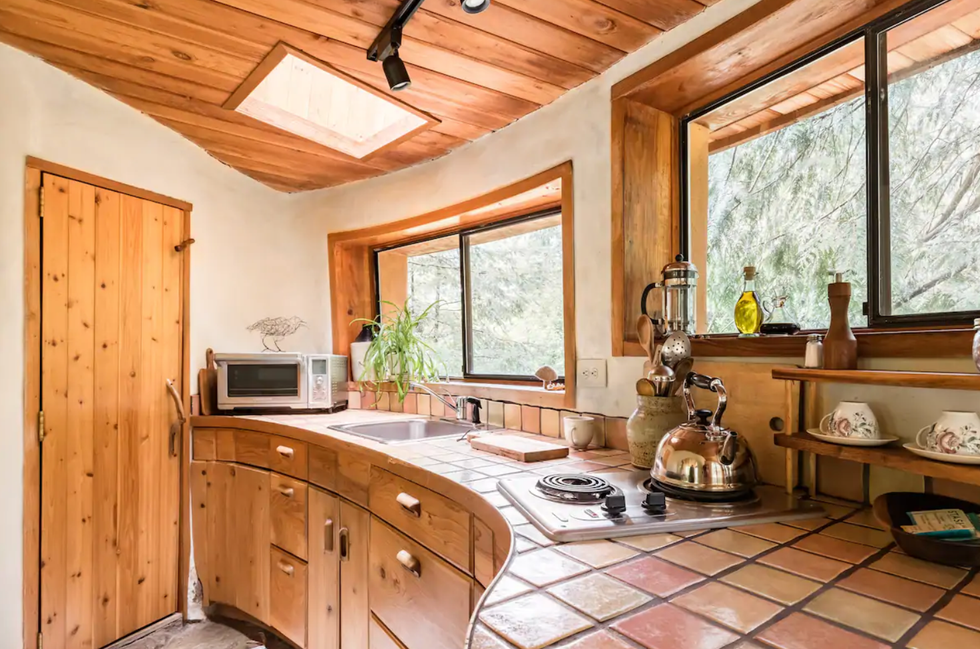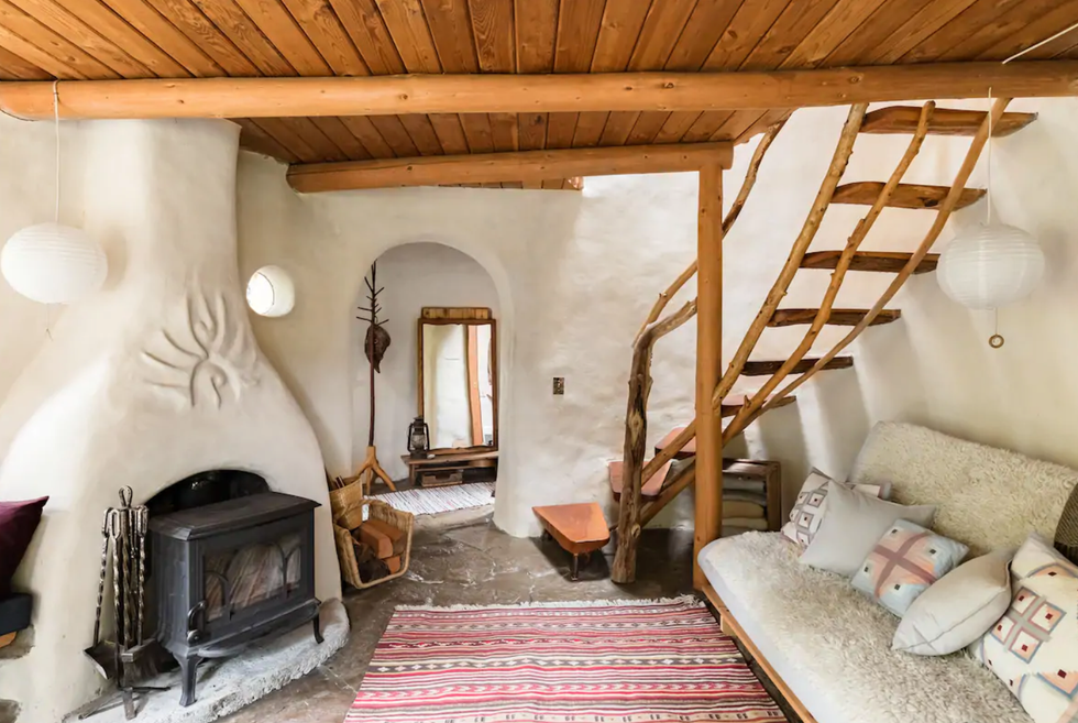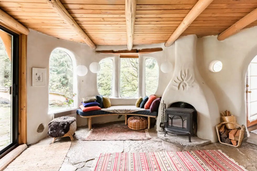 The listing describes the property as a “one-of-a-kind earth house,” that has been hand-sculpted using local and sustainable natural materials.
