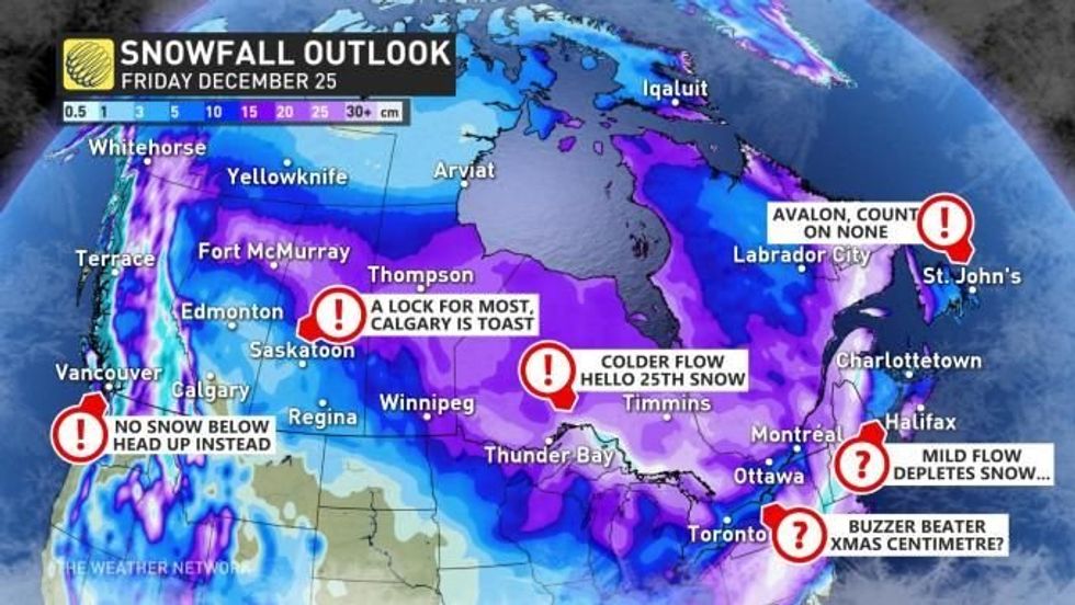 The Weather Network has released Canada's white Christmas forecast and it's very hit or miss depending on where you live across the country.
