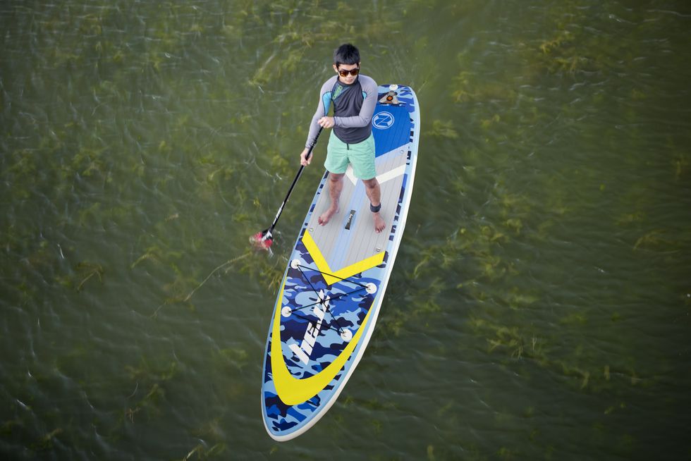 At 11 feet long, this SUP's big enough for a paddler and a passenger — be they human or an intrepid puppy dog — up to a maximum combined weight of 309 pounds.