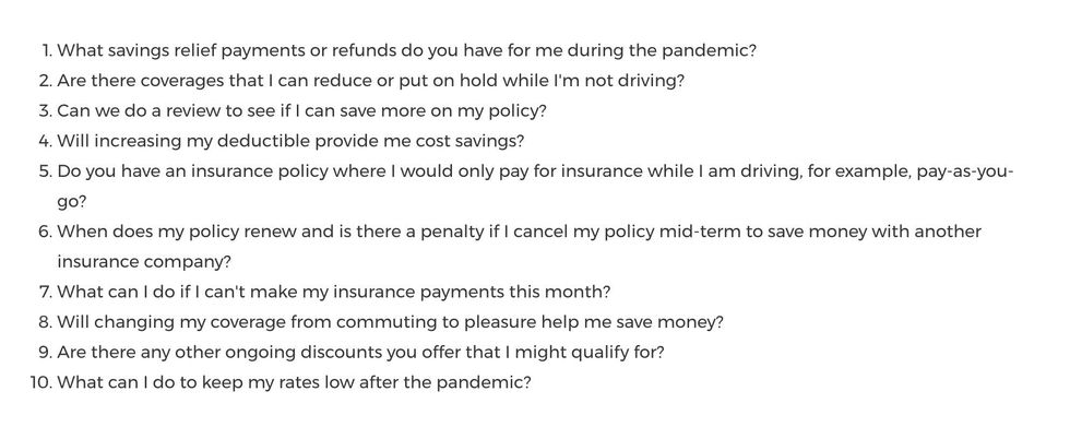 Finally, drivers can ask what actions they can take to keep their rates low, even after the pandemic.