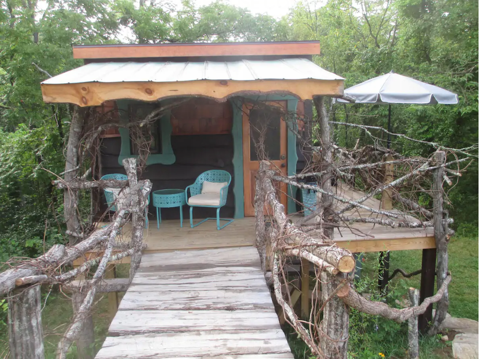 The Outlander Treehouse Cottage is located on a picturesque nature preserve. This homey spot sleeps two and is perfect for a romantic mountain retreat with your better half.