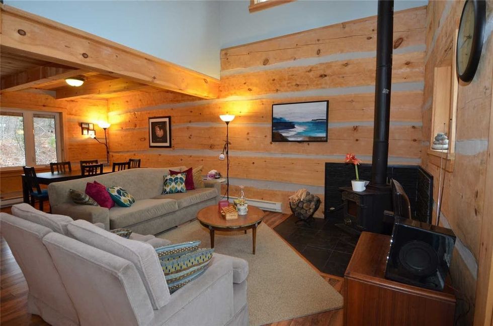 You’ll get the traditional Ontario getaway experience here, relaxing on a spacious front porch and cuddling up by the fireplace.
