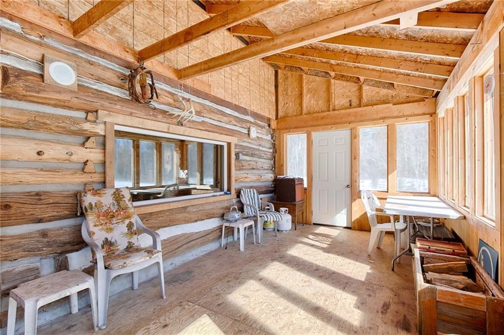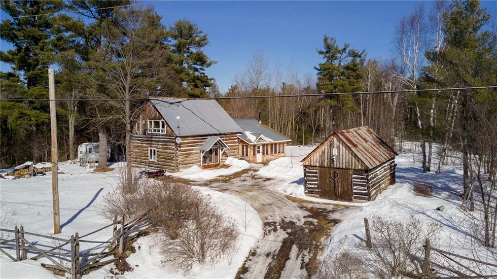 Located in Dacre, Ontario, the cozy log house sits on 4.91 acres with easy access to the road.