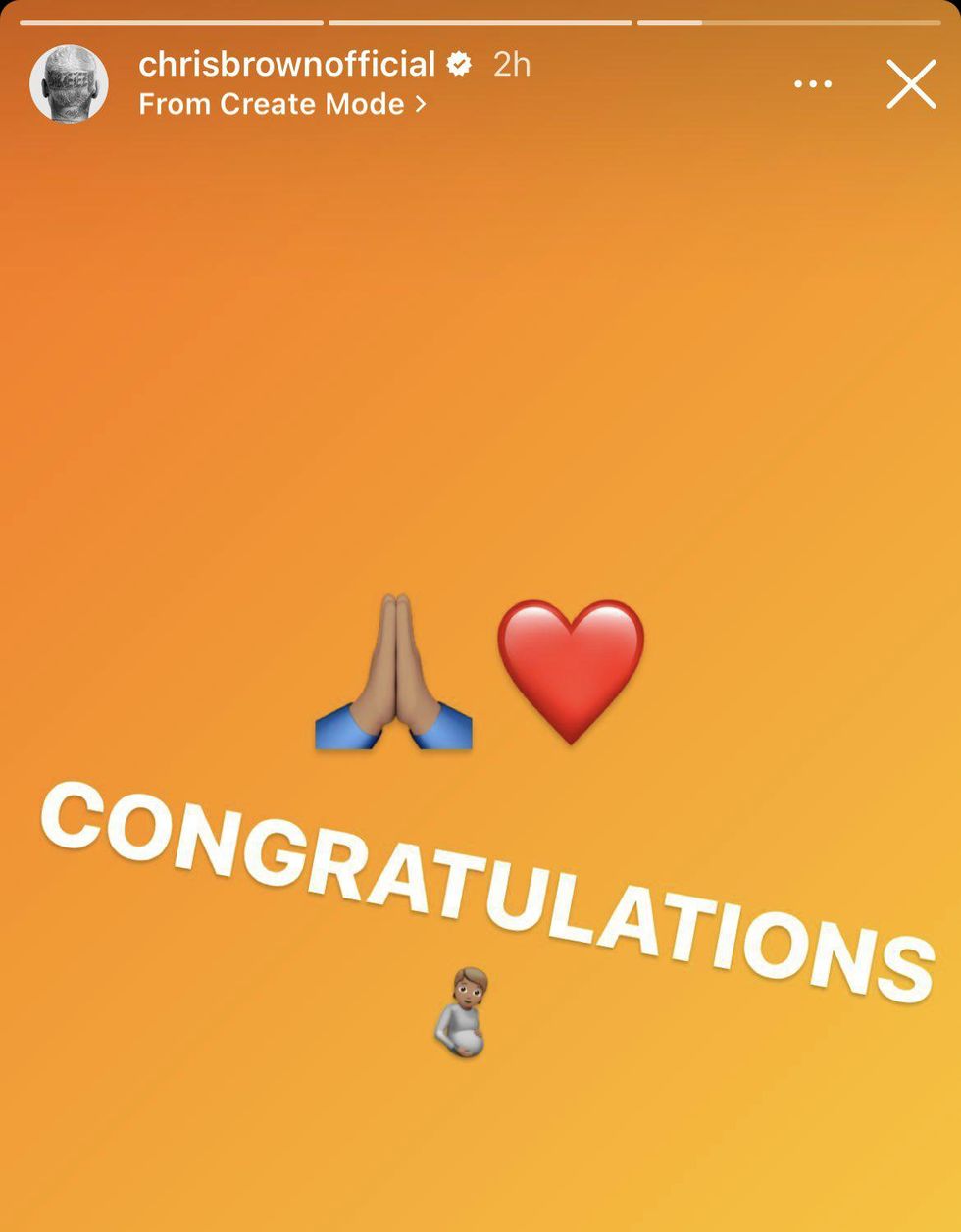 The R&B singer took to Instagram stories to write "Congratulations." Though he didn't tag Rihanna, he added an emoji of a pregnant woman, a heart and prayer hands.