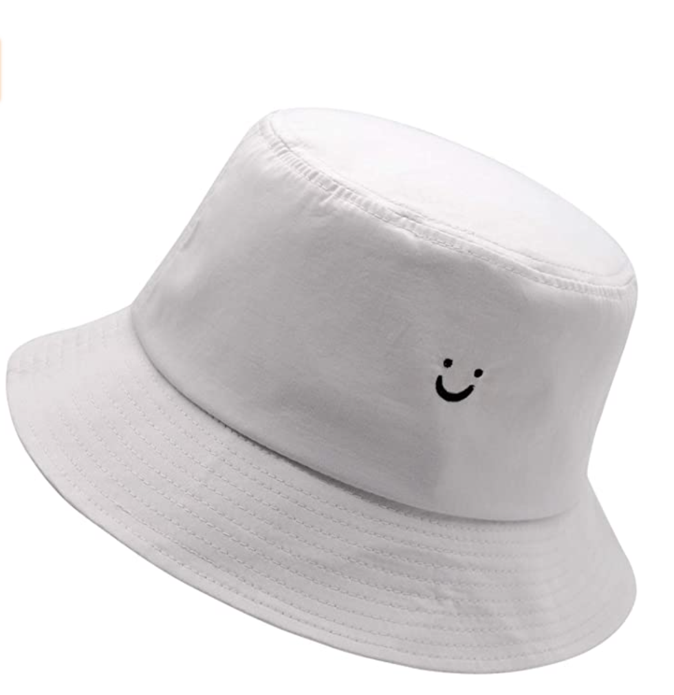 Details: Please welcome this famous hat from the 90s: A bucket hat with the tiniest smile you've ever seen in your life on it. These guys were all over the heads of people walking around the mall back then. And now? You can have one, for a low, low price.