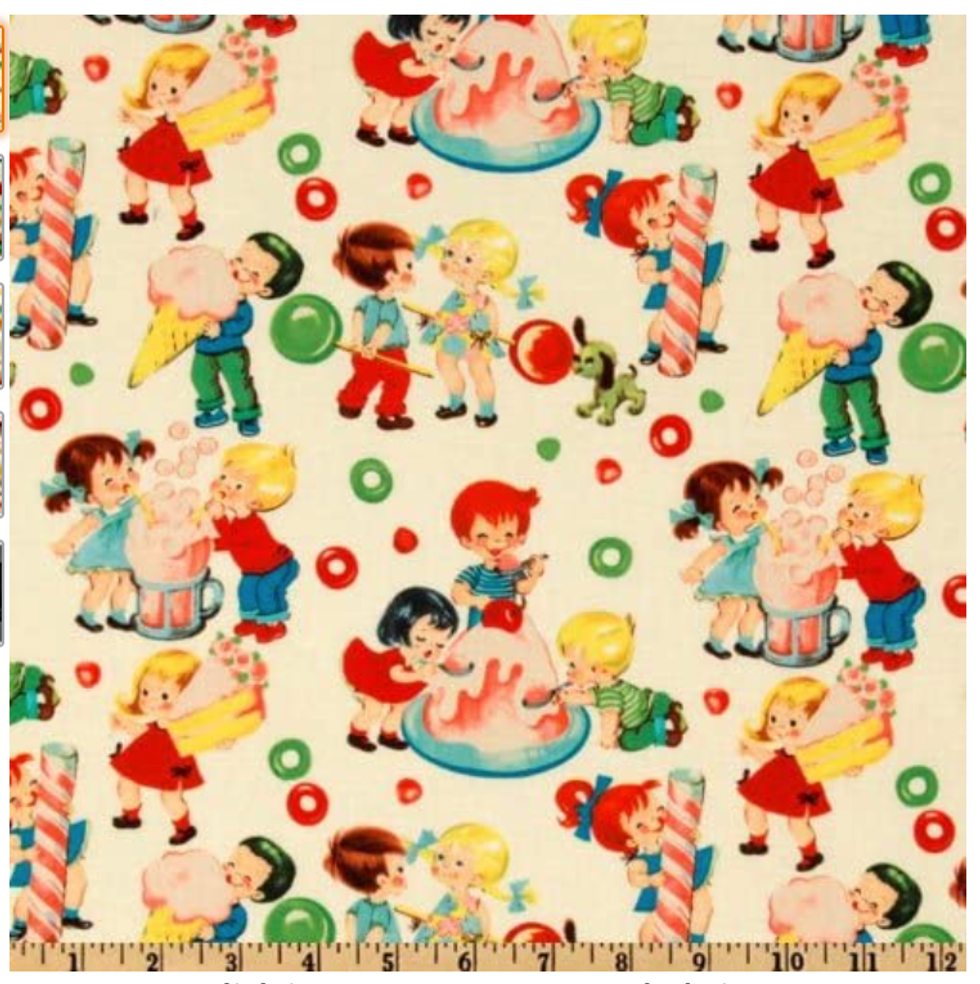 Details: If you want to transport yourself back to when you were a child staying at your grandma's house, how about one of these retro quilt fabrics? Creep yourself out all over again by making a blanket out of one of these to remember seeing them as a young child and, even then, thinking, "That's...kind of weird."