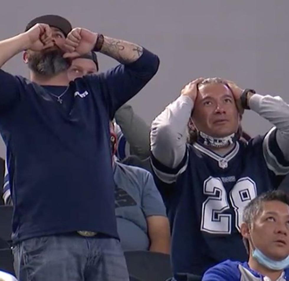 The Cowboys were blown out the Cardinals 38-10 and the reactions of some fans went viral on social media, as they strike popular defeat poses in the stands and at home.