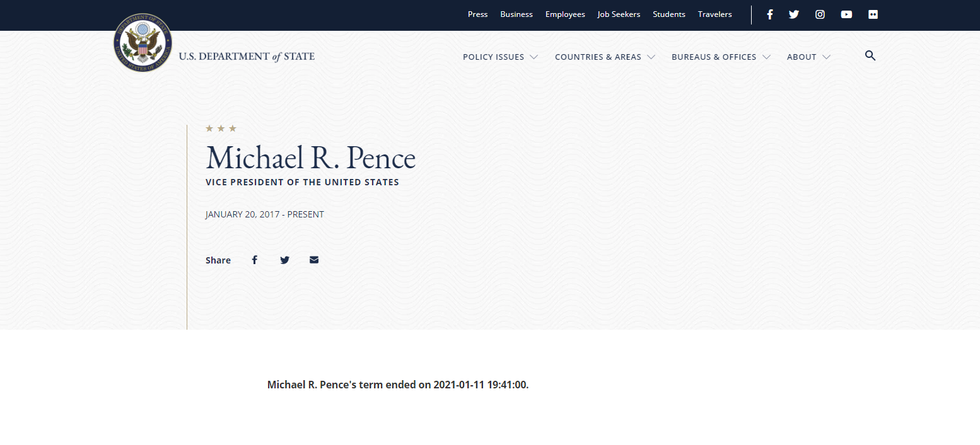 Both Trump and Pence's pages have now been removed from the site so the department can fix the error, which some found to actually be quite hilarious.