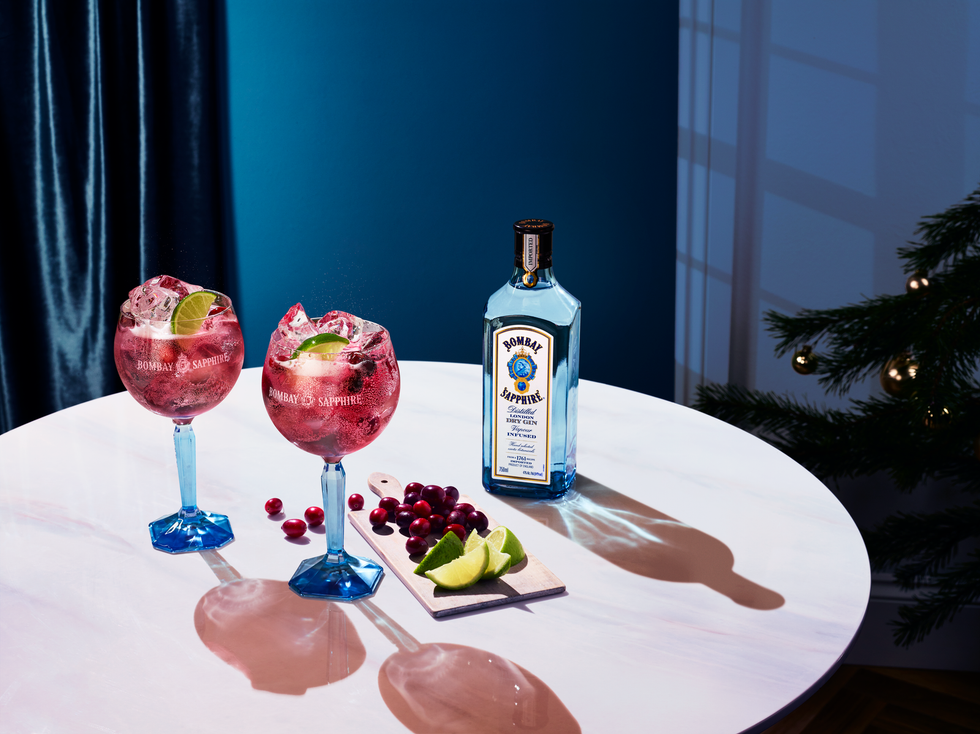 This festive twist on a classic G&T will be your new go-to cocktail. Just combine one-and-a-half ounces BOMBAY SAPPHIRE Gin, two ounces of premium tonic water and two ounces of cranberry juice to a balloon glass filled with ice.