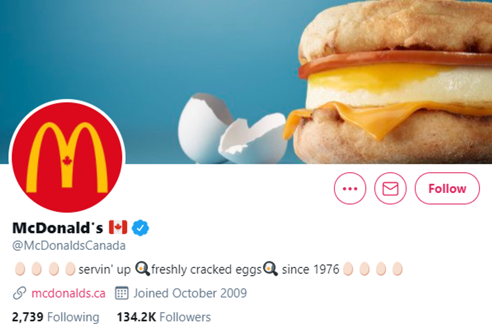 The header is now the Egg McMuffin and the bio throws some serious shade at Tim Hortons complete with eggcellent emojis.