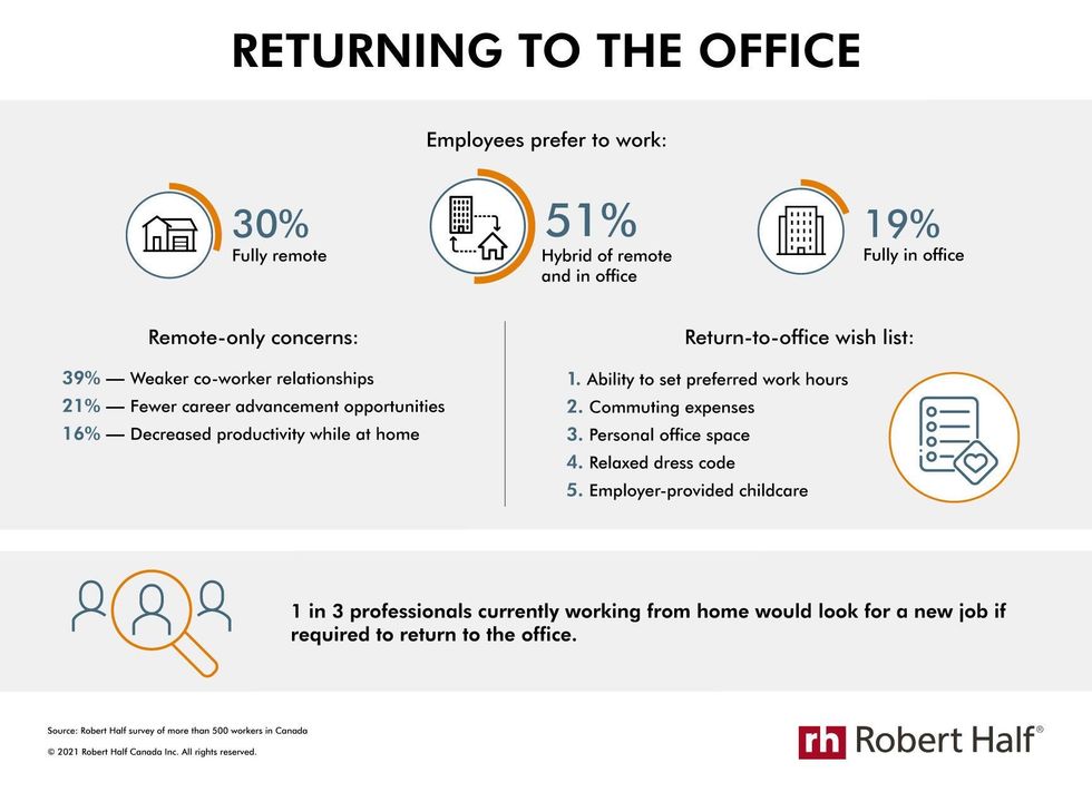 In fact, research from staffing firm Robert Half found that around 33% of professionals currently working from home in Canada would actually look for a new job if they were required to go back to the office permanently.