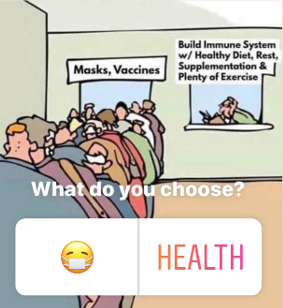 "It’s about actually taking care of yourself — building a healthy immune system through diet, lifestyle, exercise [...]; true health versus a vaccine or injection that typically contains agents of disease-causing microorganisms that medical communities believe will help people," she said.