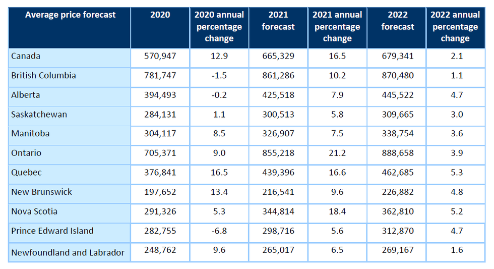 This forecast says that by 2022, the province's average home could cost $888,658, an increase of $33,440.