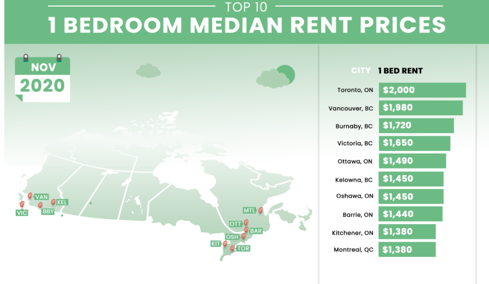 London, Kingston and Hamilton also aren't far behind, all of them in the $1,200 range.