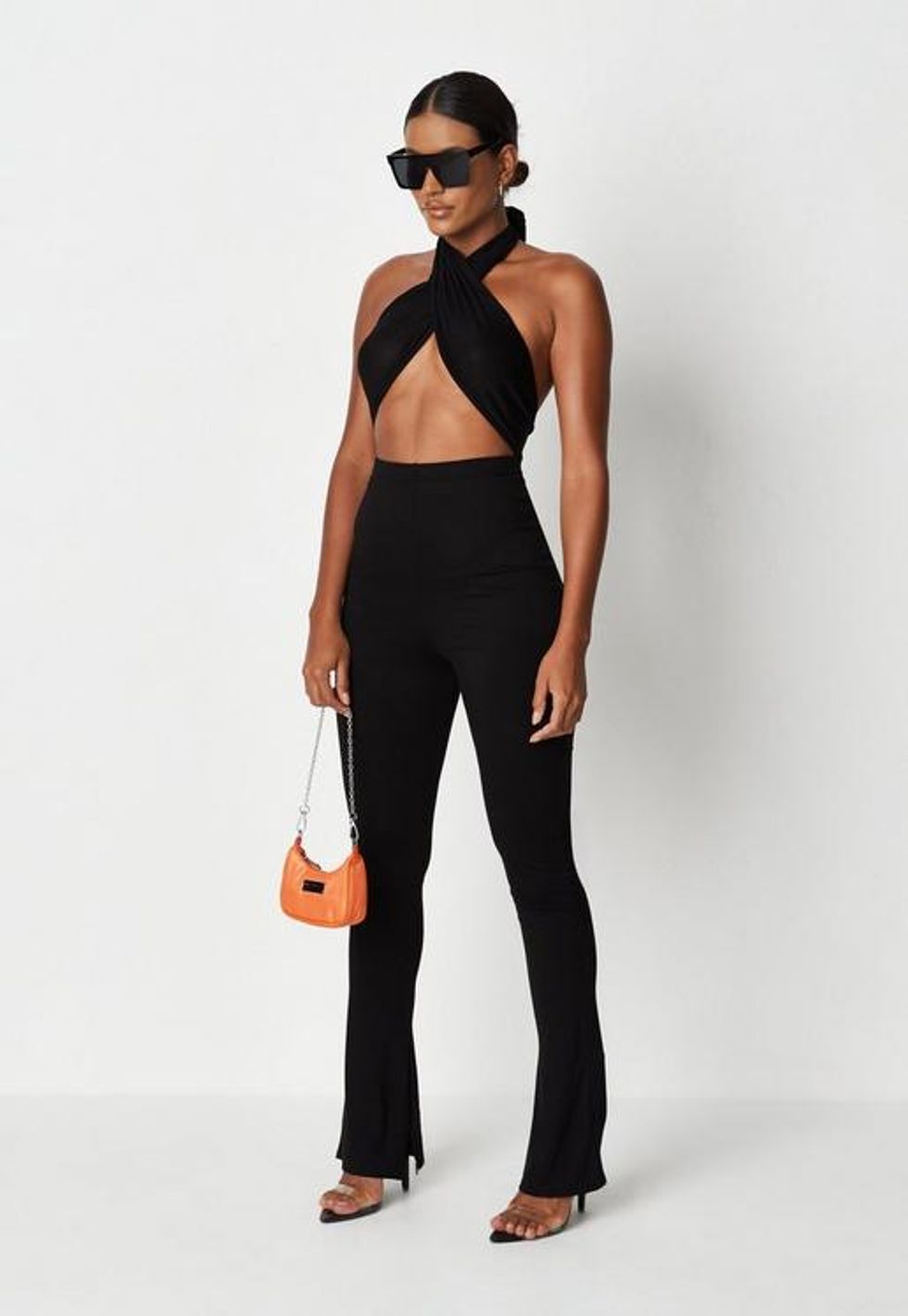 Missguided Black Wrap Top & Pants Set