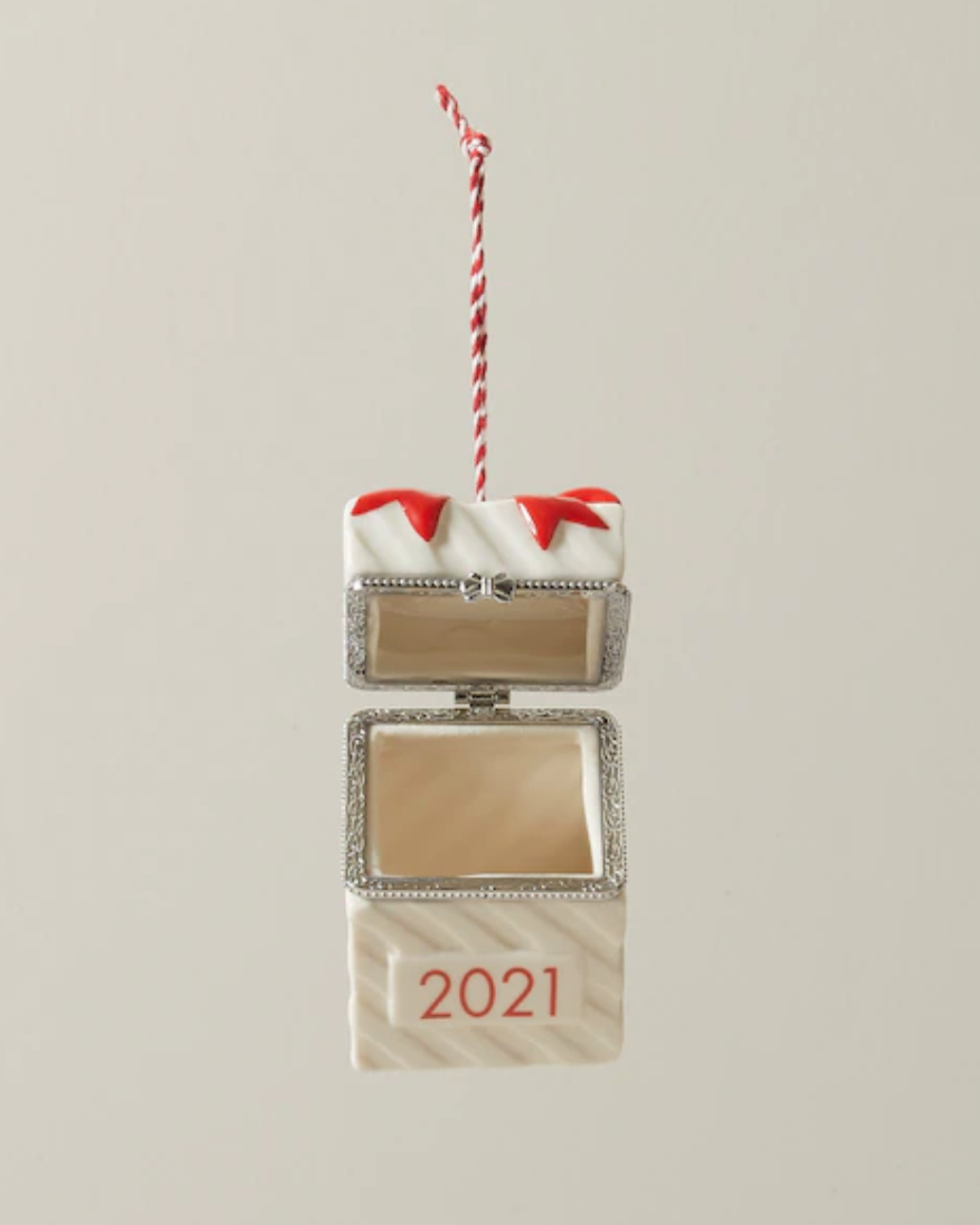 Details: This unique ornament features a compartment for a keepsake that you'll be reminded of every year. You can write yourself a note or store a tiny photo. If you're planning on proposing over the holidays, it's the perfect size for a ring!