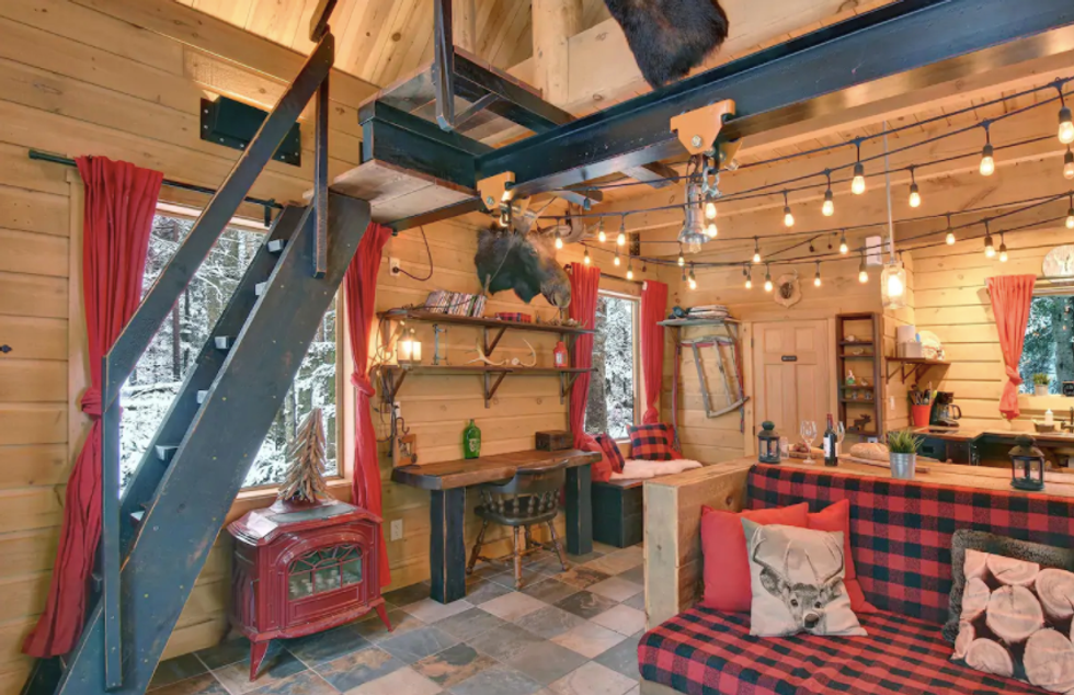 Pourquoi tu dois booker : Pouvant héberger jusqu'à quatre voyageurs, ce coin de paradis perché dans les airs détient un bain-tourbillon directement sur sa terrasse et se trouve à quelques minutes des pentes de ski.